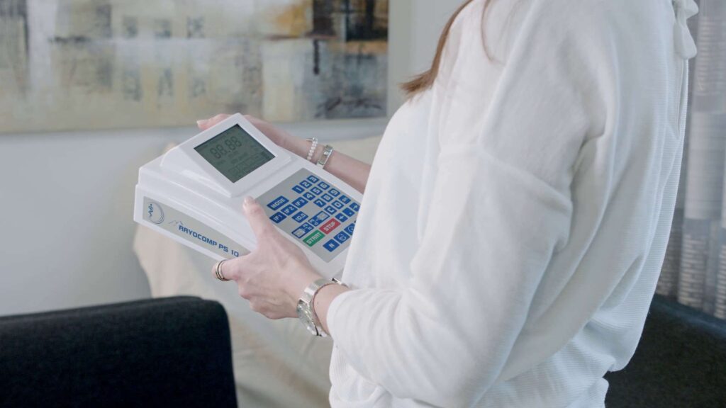 Since 1982, we have been dedicated to developing complementary medical solutions aimed at stimulating and supporting the organism’s own regulation through cell stimulation. We have developed two Class I and IIa medical devices, certified to DIN EN ISO 13485 for medical use, which have been designed to complement each other: The stationary high-end device Rayocomp PS 1000 polar 4.0 med. features the ECG-based Rayoscan® function, which uses biofeedback methods to create an energetic fingerprint of the patient. Based on this energetic analysis, personalised treatment concepts can be formulated. With the Rayocomp PS 10 med. these can be used at home on an outpatient basis – i.e. during home sessions under the supervision of a practitioner.